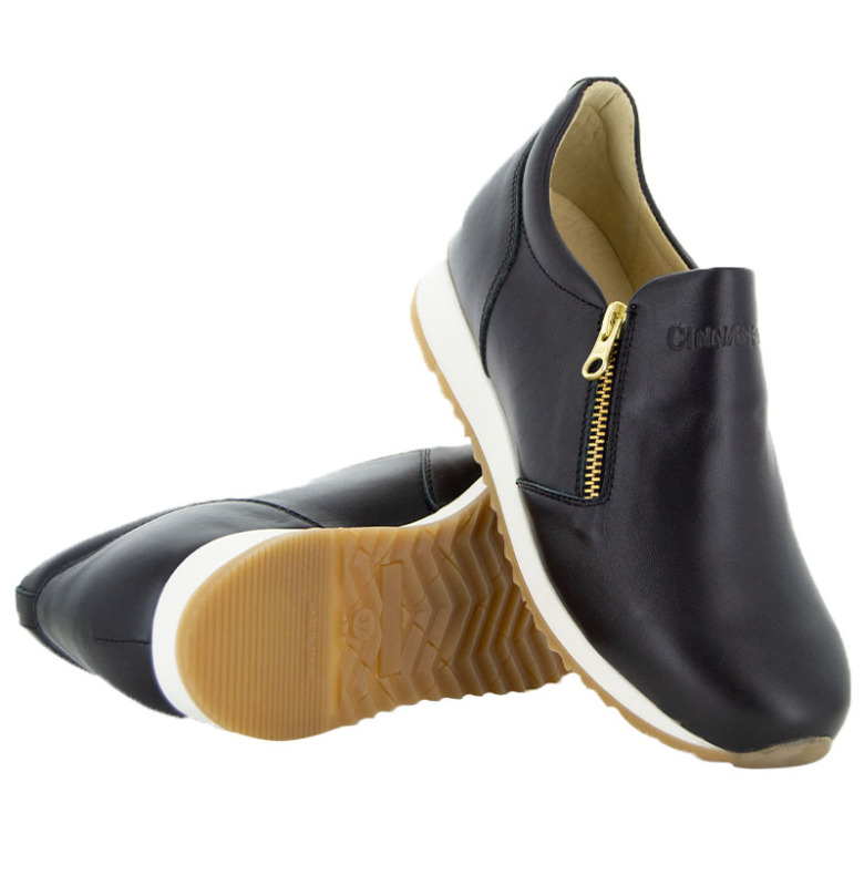 Bonnie svart - stilren sneaker i skinn med dragkedja
