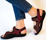 Ella är en sportsandal med flera smarta funktioner. Den är gjord i skinn med ett parti stretchande textil på insidan så att den ska sitta riktigt skönt och anpassa sig efter din fot. Perfekt om du till exempel har hallux valgus eller om du bara vill ha en riktigt följsam sandal. Med de tre avklippbara kardborreremmarna reglerar du sandalen efter din fot och du kan dessutom dra ur hälremmen om du hellre vill använda sandalen som en slip-in. Innersulorna är uttagbara så du lätt kan lägga i dina egna fotbäddar. Här ser du Ella i en läckert röd färg.