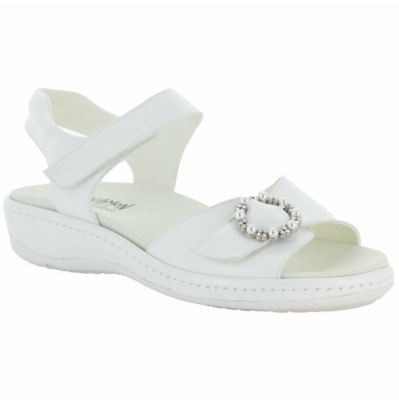 Havanna är en supermjuk, bekväm och framför allt elegant sandal som blir pricken över i'et på vilken fest som helst! Här i en klassisk och snygg vit variant. Med detaljer som ett lyxigt skimrande skinn samt strassdekor är den lika snygg till trädgårdsfesten som till en mer formell tillställning. Med Havanna får du utseendet av en finsko men komforten av en mjuk sandal. Det bästa av två världar helt enkelt! Självklart kan innersulan plockas ur om du vill använda egna inlägg.