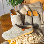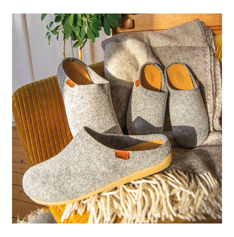 Helmi är en snygg och stilren slip-intoffla i ullfilt där 50% av ullen är återvunnen. Här i en klassisk grå nyans. Yttersulan ger bra grepp mot underlaget och innersulorna går att ta ur om du vill använda egna skoinlägg. Helmi är en unisex-modell och passar lika bra till kvinnor som till män!