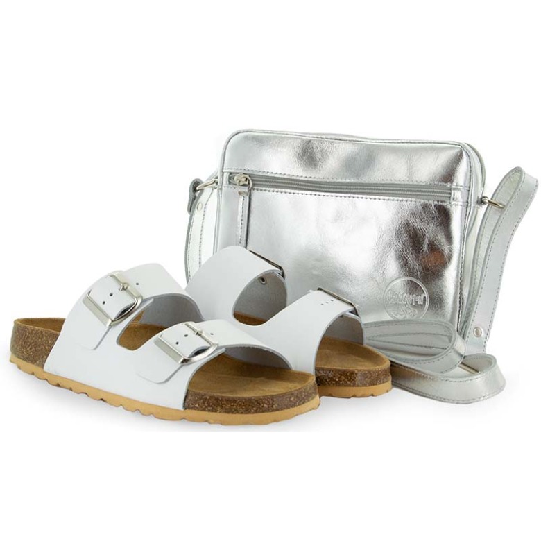 Jessica är en biosandal med extra allt! Här i vitt skinn med ett nsyggt silverspänne som detalj. Passformen är bred med fullt reglerbar ovandel i äkta skinn. Sulan är klädd med äkta mocka och dessutom har vi lagt ett mjukt lager skumgummi under mockan för skönaste komfort. Sulan är formad efter foten och extra djupt skålformad under hälen för att förebygga hälproblem.