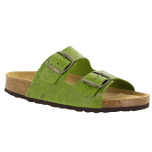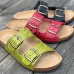 Jonna är en biosandal med extra allt, här i härligt limegrön färg! Passformen är bred med fullt reglerbar ovandel i äkta skinn. Sulan är klädd med äkta mocka och dessutom har vi lagt ett mjukt lager skumgummi under mockan för skönaste komfort. Sulan är formad efter foten och extra djupt skålformad under hälen för att förebygga hälproblem. Och som inte det vore nog så har Jonna ett präglat vackert skinn som ger sandalen en helt unik look.