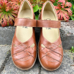 I ballerinaskon Lilly får dina fötter extra gott om plats så att du kan gå riktigt skönt hela dagen. Remmen över foten går att klippa av så att du kan anpassa skon perfekt efter din fot. Detaljer som ljusa sömmar, det "flätade" mönstret samt en cool sula ger skon en helt unik look och ger din outfit det lilla extra! Här syns Lilly i en snygg konjaksfärg.