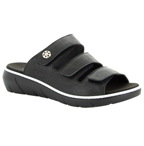 Maria är sandalen som kombinerar bekvämlighet med stil. De tre justerbara kardborreremmarna samt hälremmen ger en personlig och stabil passform, medan den uttagbara sulan gör det enkelt att anpassa sandalen efter egna inlägg. Den eleganta dekoren på sidan sätter pricken över i och ger ett snyggt, genomarbetat uttryck, perfekt för både vardag, lediga sommardagar eller varför inte som en innesko? Här i svart som passar till allt!