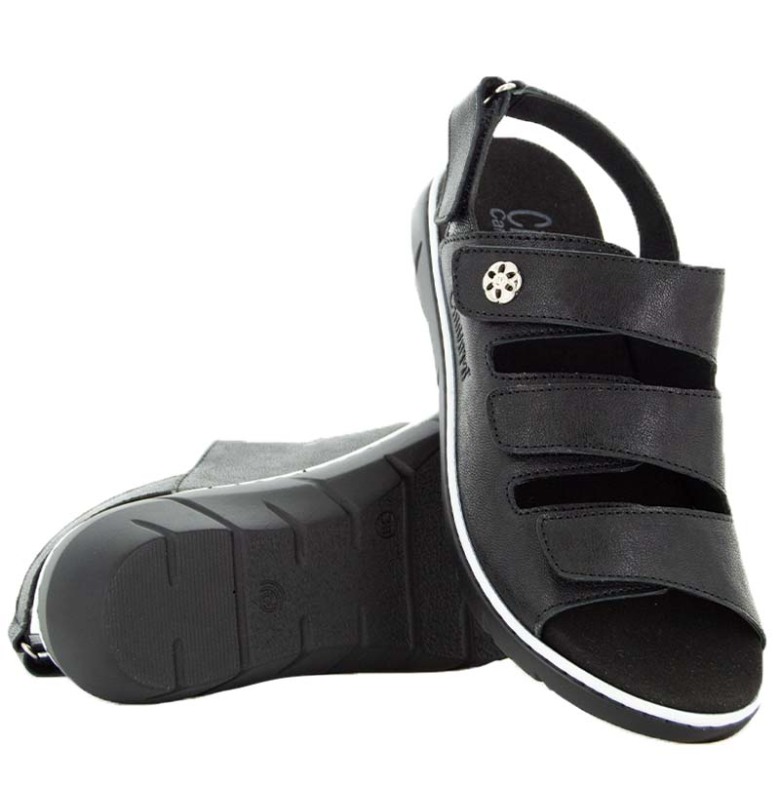 Maria är sandalen som kombinerar bekvämlighet med stil. De tre justerbara kardborreremmarna samt hälremmen ger en personlig och stabil passform, medan den uttagbara sulan gör det enkelt att anpassa sandalen efter egna inlägg. Den eleganta dekoren på sidan sätter pricken över i och ger ett snyggt, genomarbetat uttryck, perfekt för både vardag, lediga sommardagar eller varför inte som en innesko? Här i svart som passar till allt!