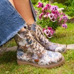 Snygga Mika är en klassisk skinnkänga, här i ett fint blommigt mönster! Passformen är bred och skön. Yttersulan ger skön svikt samtidigt som den har ett rejält mönsterdjup för ett riktigt bra grepp. Dragkedjan på insidan gör kängan enkel att ta på och av och skinnfoder skapar ett skönt klimat i kängan.