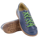 Mikaela eller Mikael är en skön skinnsko med stötdämpande gummisula. Här i snygg blå nyans. Modellen passar lite bredare fötter men har du en smalare fot kan du lägga i en 2 mm-sula för att få en flexibel passform. Skon är snörad långt ner över foten vilket gör att den är lätt att anpassa efter olika typer av fötter. Mikaela är en snörsko med många möjligheter. Byt snöre efter tycke, smak eller humör och se hur skon får ett nytt utseende och en personlig look.