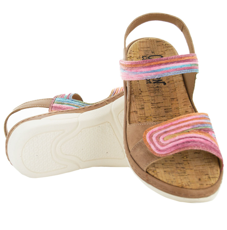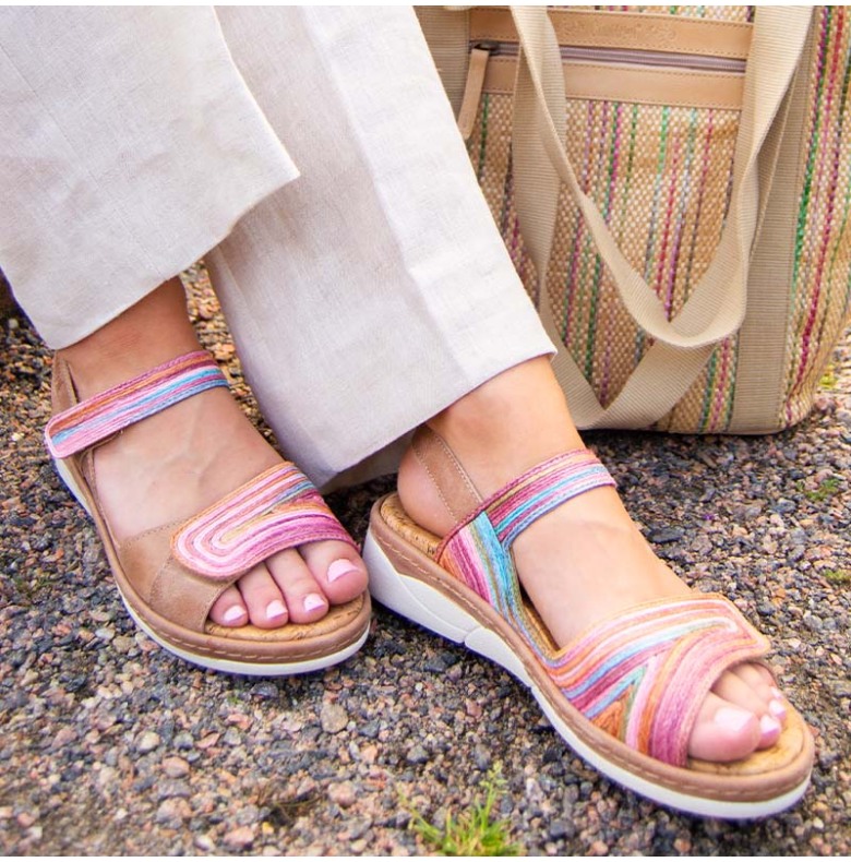 Olga är en somrig sandal som bjuder på både komfort och charm. Här i en snygg konjaksfärg med pastellinslag. Med sina fina detaljer ger den en lekfull touch till din outfit, samtidigt som den stabila känslan och genomtänkta designen står för hög komfort och kvalitet. Kardborreremmarna gör det enkelt att hitta rätt passform, och den uttagbara sulan ger extra flexibilitet för egna inlägg. En pålitlig favorit för soliga dagar. Snygg, skön och lätt att älska!