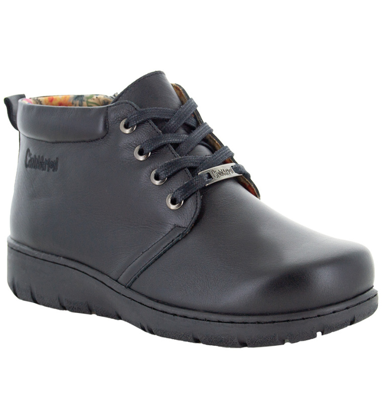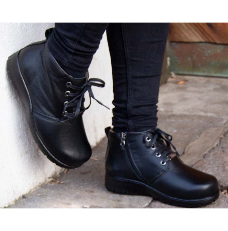 Peggy är den perfekta skinnkängan för dig som söker både komfort och stil! Här i klassiskt svart som passar till allt. Den extra extra breda M-lästen ger en fantastisk passform, medan den kombinerade snörningen och dragkedjan gör det enkelt att justera passformen och snabbt komma i och ur skon.