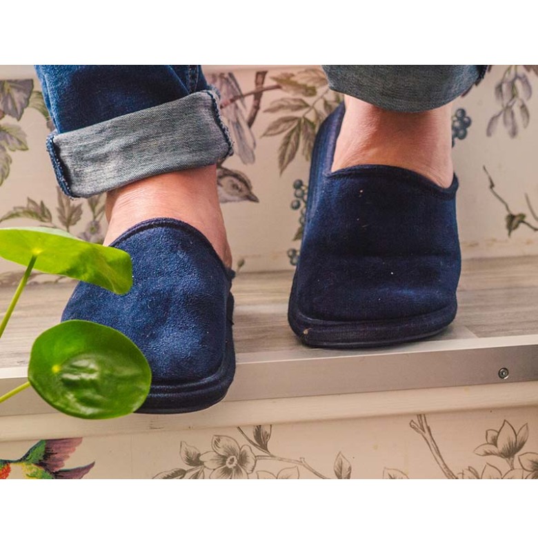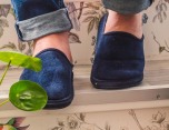 Peter är klassisk slip in-toffla i mockaliknande textil. Flanellfoder i fint rutmönster.