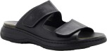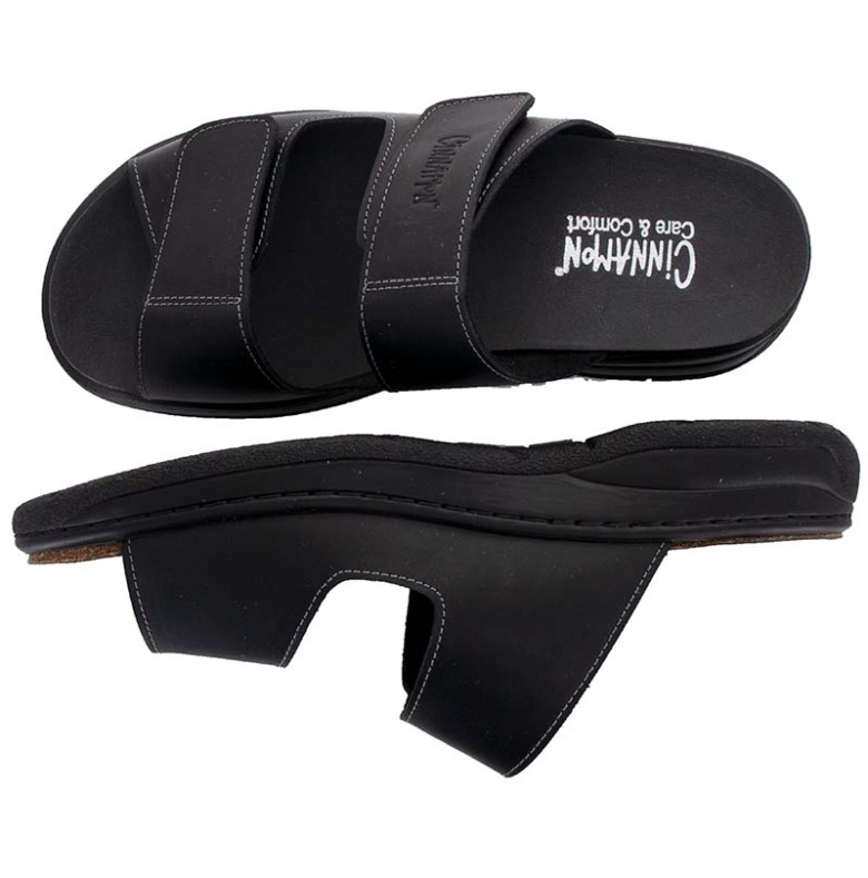 Slip-in sandal i skinn med reglerbara kardborreband över foten vilket gör att den passar både en smalare och bredare fot. Stötdämpande sula som gör den bekväm att gå i. Fodrad med ett miljövänligt antibakteriellt syntetfoder. Självklart har den uttagbara innersulor.