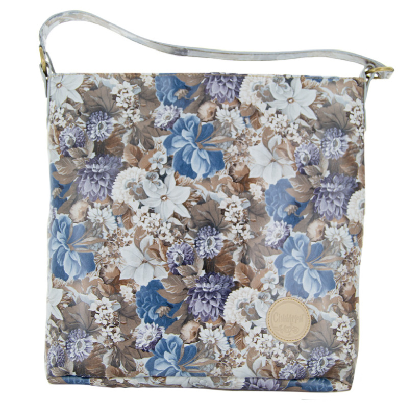 Stor skinnväska blommig blå