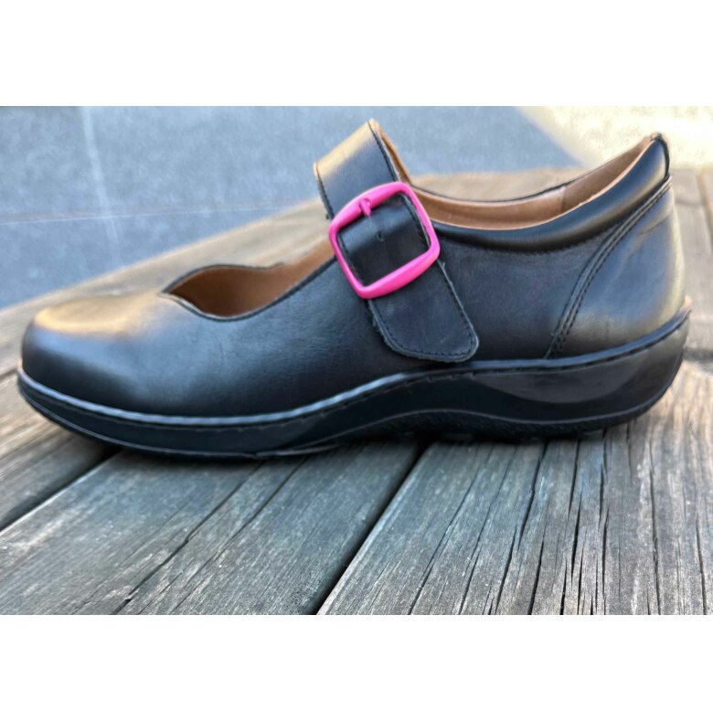 Tilda är en stabil ballerina med bred och rymlig läst samt skön sula. Under det snygga spännet med Cinnamon-logo döljer sig en praktisk kardborrerem som gör den enkel att ta på och av samt spänna åt. Lägger du i vår mellanläggssula passar den även den smalare foten. Tilda har samma sula och form som vår populära snörsko Mikaela.